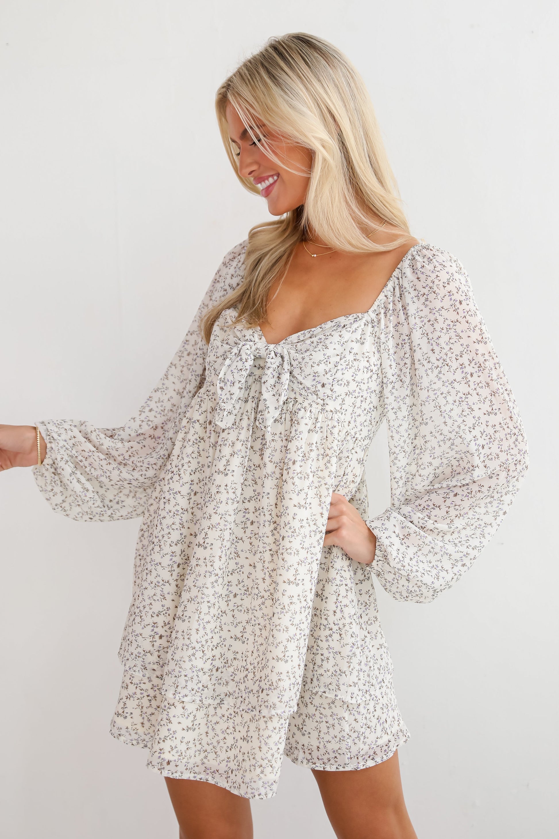 Everyone will be under your spell when you're wearing a chic and adorable 'fit like the Completely Charismatic Ivory Floral Mini Dress! Crafted from a lightweight, flowy fabric, this dress features a delicate floral print on a soft ivory backdrop, creating a timeless and feminine look. The long sleeves add a touch of grace, while the flattering mini length and fitted waist highlight your silhouette beautifully. Whether you're attending a garden party, brunch, or a romantic date, this versatile dress can be dressed up with heels or kept casual with sandals. Effortlessly chic and perfect for any occasion, this floral mini dress is a must-have for your wardrobe!