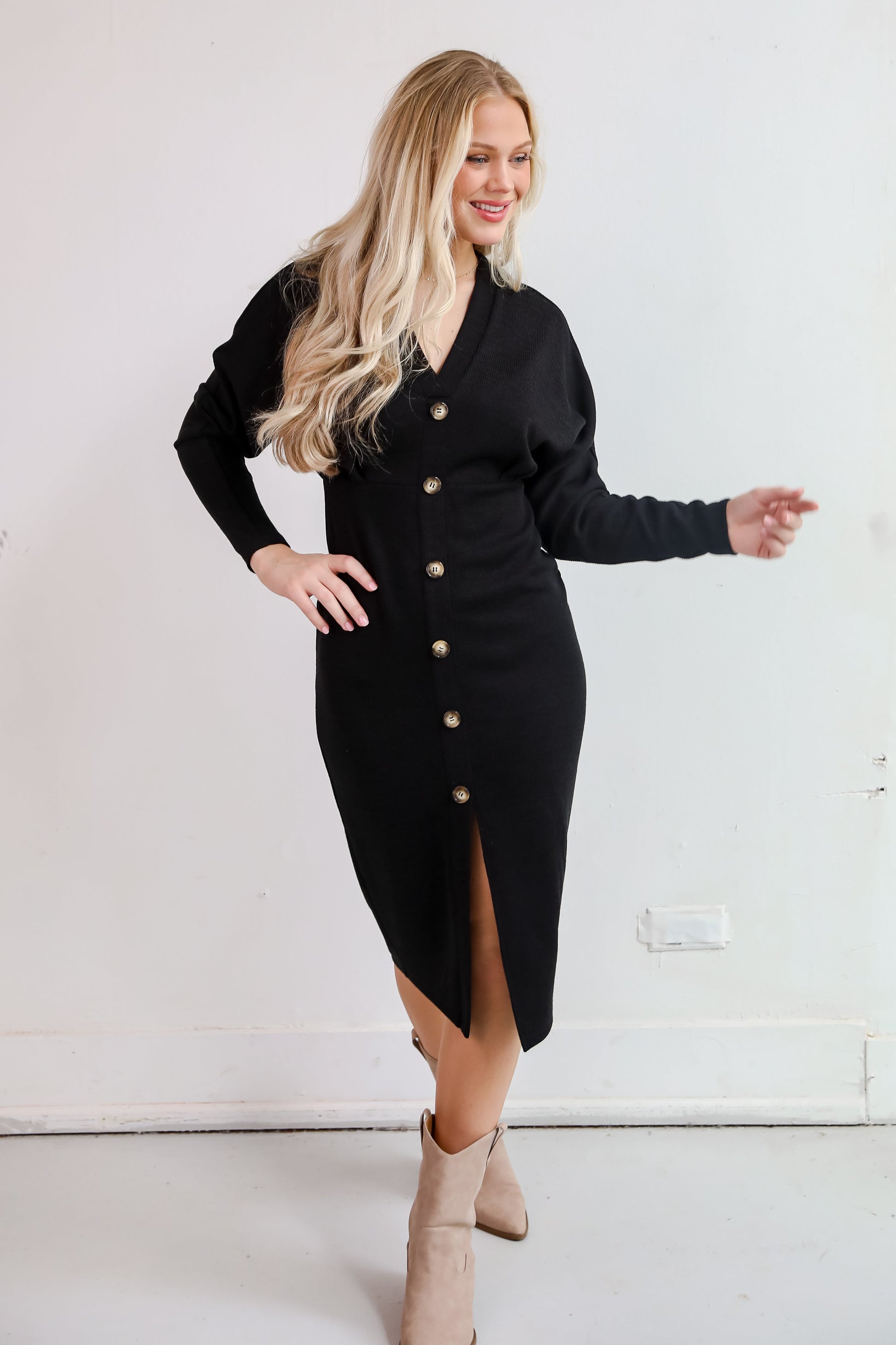 Exemplary Allure Black Ribbed Knit Midi Dress