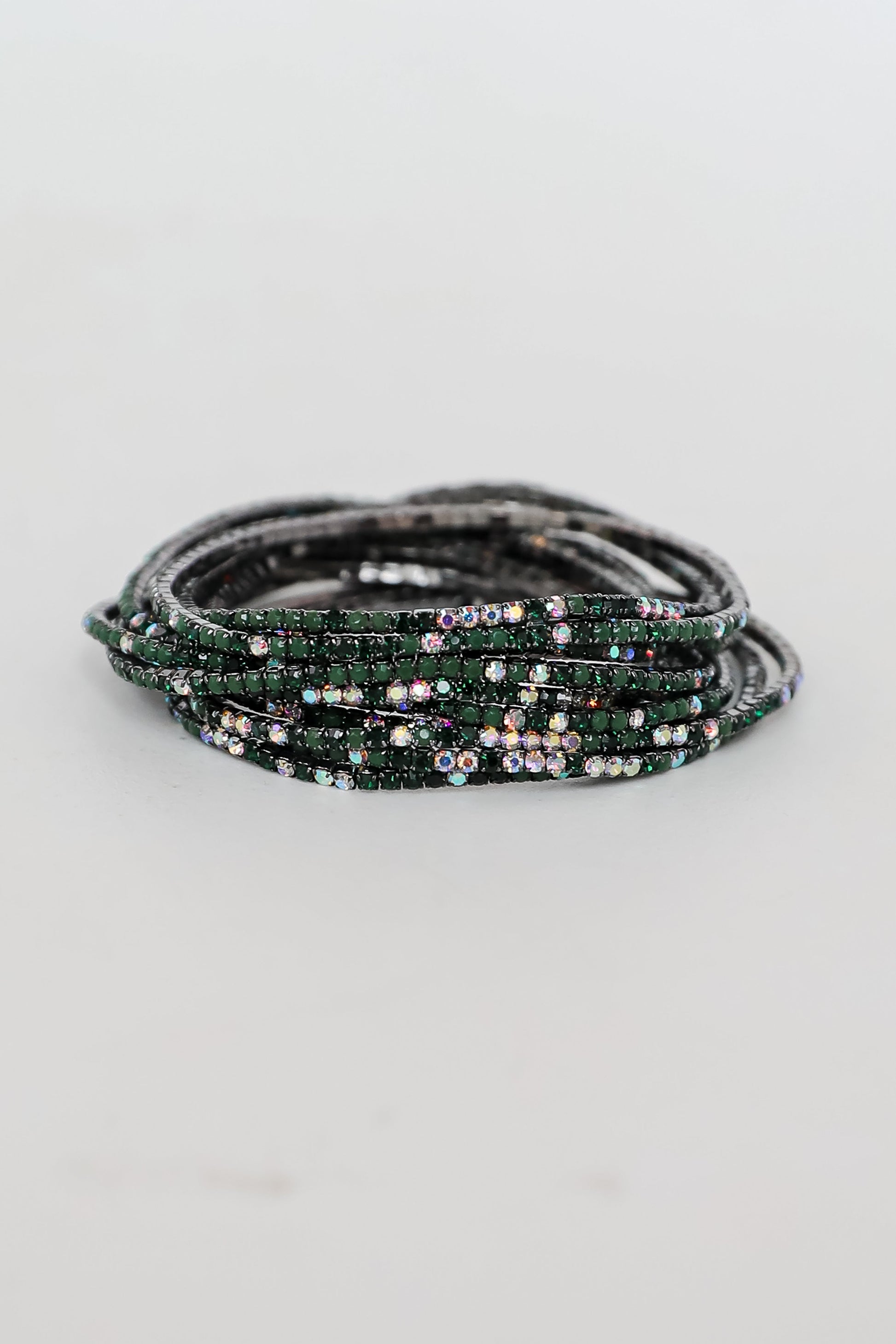 There is no easier way to elevate any ensemble than with the Jodie Hunter Green Rhinestone Bracelet Set! This bracelet set is made of multicolored rhinestones. Wear them all together, or separately, either way you'll love them!