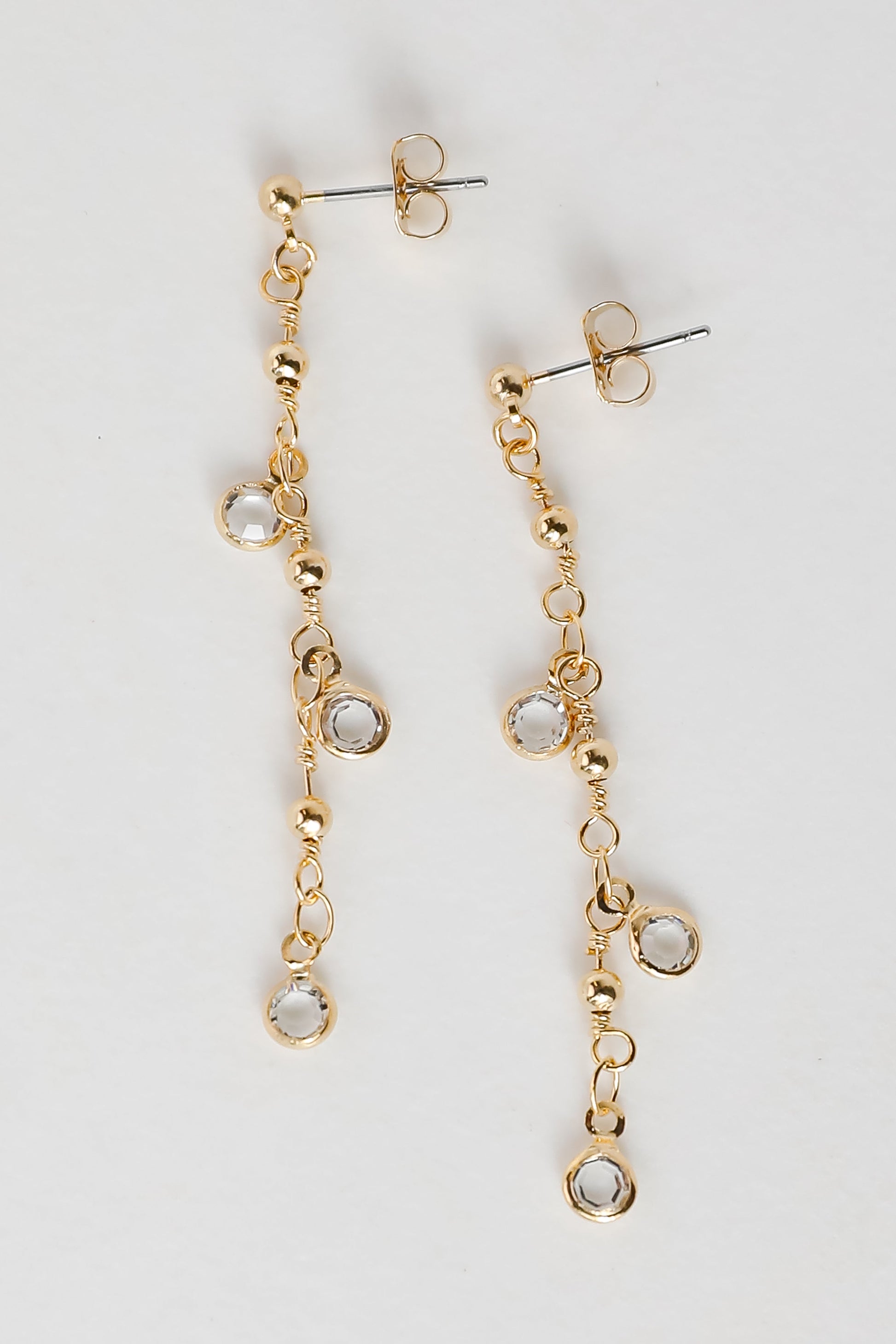 Add an extra dash of shine to your eye-catching look with the Margaret Gold Rhinestone Drop Earrings! These trendy earrings start with a stud post back and fall to rhinestone chains. Add these fun earrings to a black dress + heels to add a chic touch to your date night look!