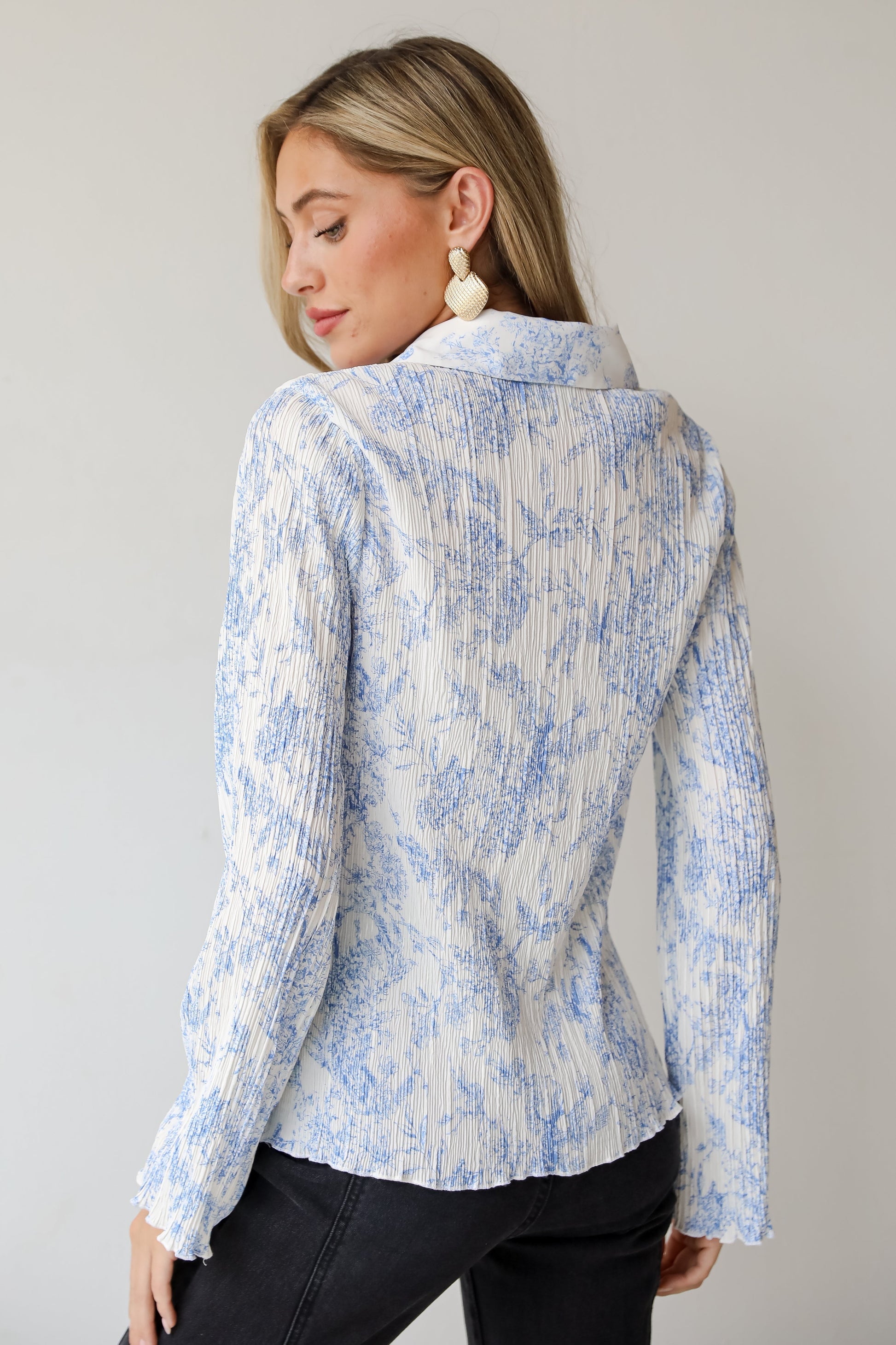Modern Devotion Blue Floral Plisse Button-Up Blouse